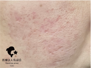 両頬のキュアジェット施術後の症例です。複数回の施術をされることをお勧めします。